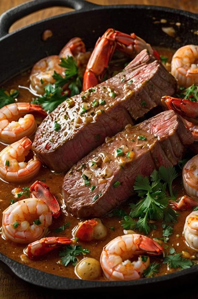 Bistecca con gamberi e salsa all’aragosta😋❤️