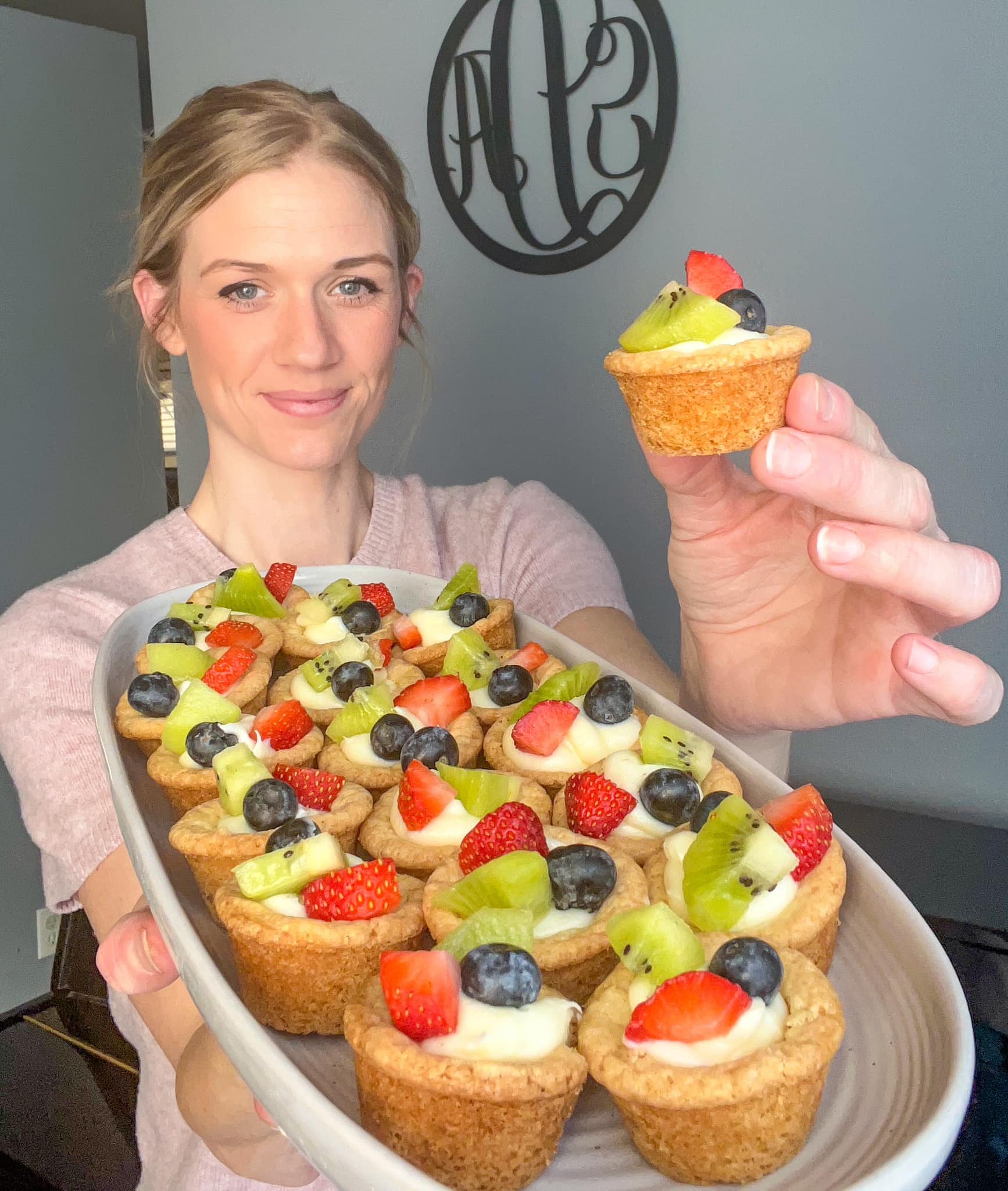 Prendete dei cubetti di pasta per biscotti allo zucchero già pronti e metteteli in una teglia per muffin. Cuocere secondo le indicazioni sulla confezione. Quando hai finito di cucinare, prendi un cucchiaio o un bicchierino e mettili all’interno per formare una tazza (il video prima di questo mostra come). Lasciare i biscotti nello stampo e lasciarli raffreddare. Li ho lasciati in freezer per una decina di minuti.