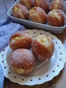 Sofficissimi al morso e dal ripieno goloso e avvolgente , i krapfen nascono nel ‘600 in Germania per poi diffondersi in tutta Europa e in Italia , soprattutto in Trentino Alto Adige e Friuli Venezia Giulia e in Veneto dove si è soliti prepararli nel periodo di carnevale. Come ogni ricetta della tradizione, anche per i krapfen esistono diverse versioni e varianti, quella di cui sto per parlarvi è la mia ricetta , molto simile alla ricetta originale dei krapfen , ricetta testata e collaudata negli anni .